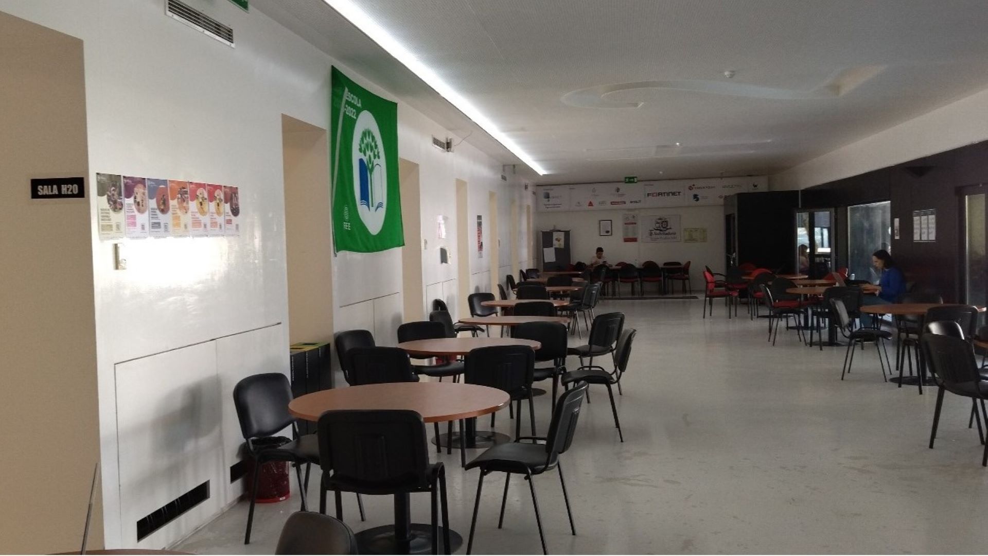 O “Espaço 24 horas” tem a capacidade máxima de 72 lugares (17 mesas e 72 cadeiras), acesso à rede wireless do Instituto e a tomadas elétricas.