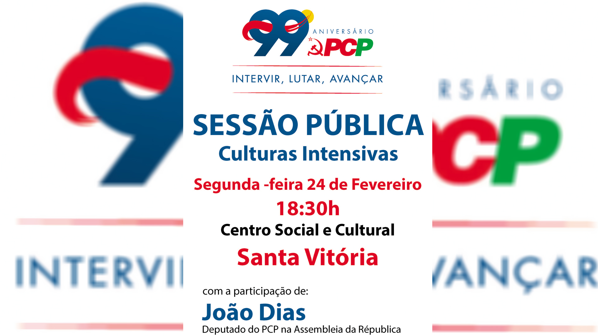 A Comissão Concelhia de Beja do PCP promove, hoje, pelas 18h30, uma Sessão Pública sobre Culturas Intensivas no Centro Social e Cultural de Santa Vitória.