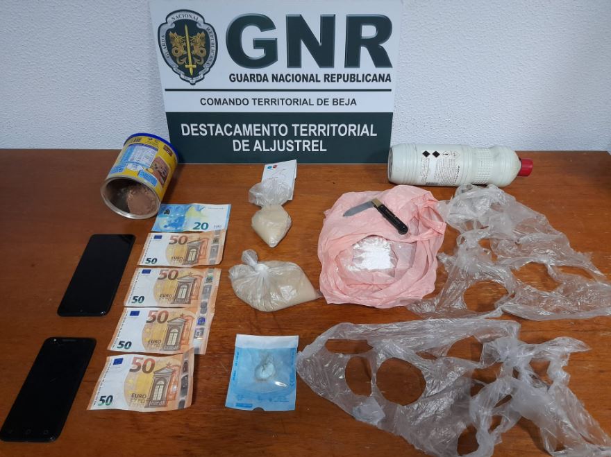Durante uma busca domiciliária realizada ao indivíduo, a GNR apreendeu 1 693 doses de heroína; 15 doses de cocaína; dois telemóveis e 220 euros.